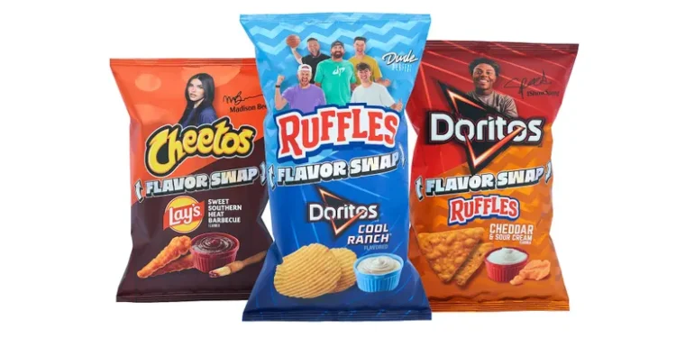 The latest products pair an influential figure or figures with a brand new flavor combination: singer-songwriter Madison Beer with Lay’s Sweet Southern Heat Barbecue on Cheetos Crunchy; streamer iShowSpeed with Ruffles Cheddar & Sour Cream on Doritos; and sports-comedy group Dude Perfect with Doritos Cool Ranch on Ruffles.